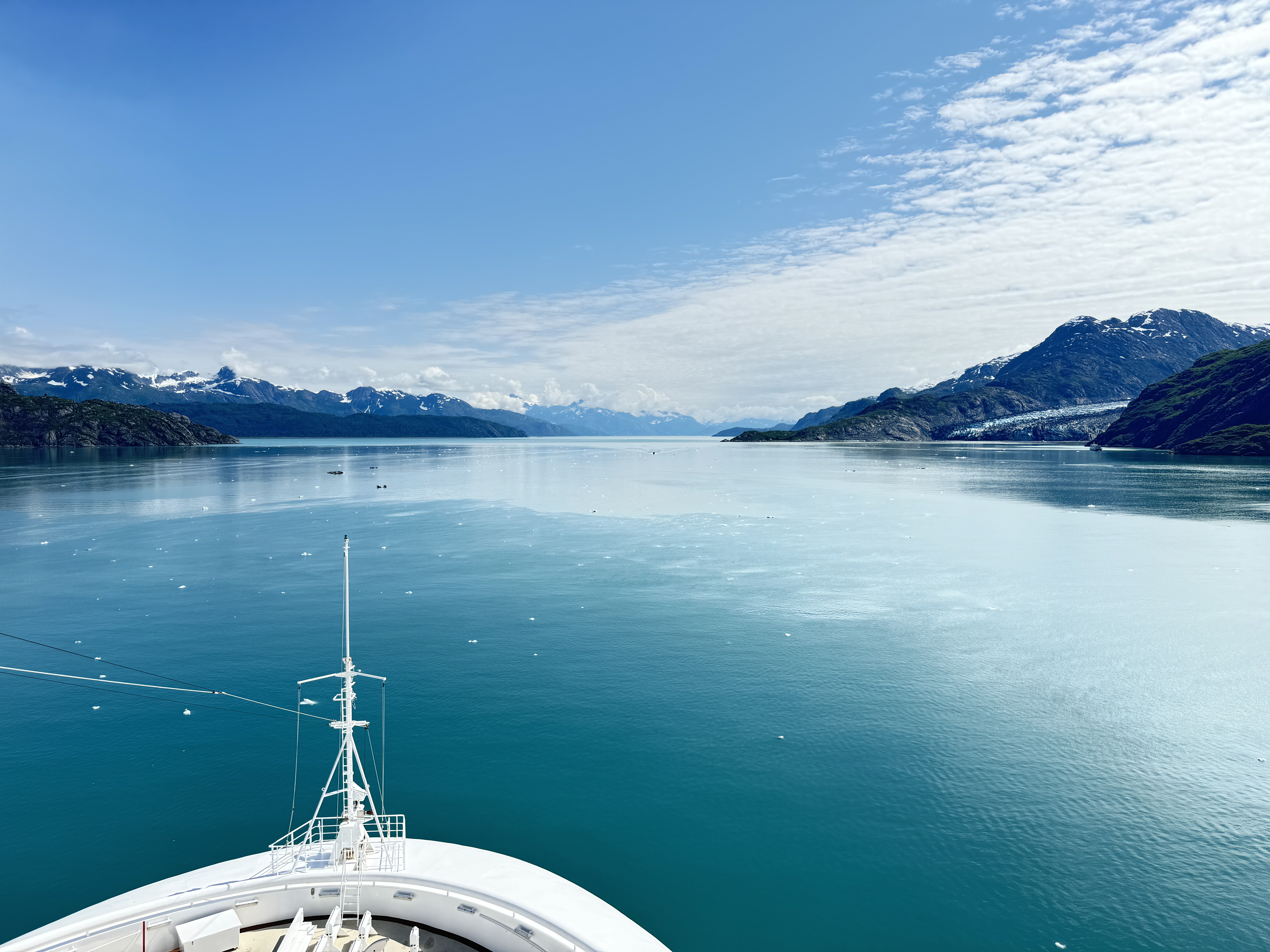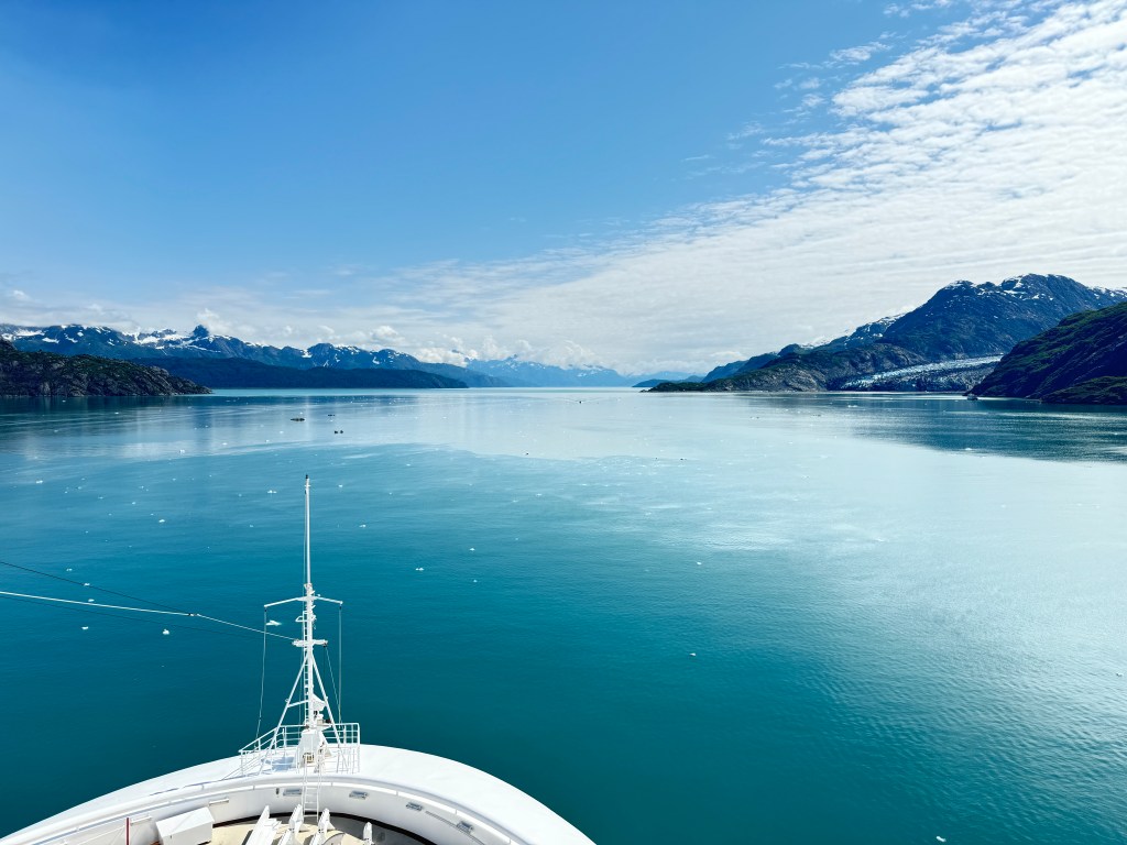 Having been warned by people on Reddit about the chilly temperatures at Glacier Bay, I had packed several layers to stand on deck and watch as we entered the bay.